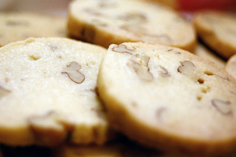 - Using a wooden spoon, stir in the flour and pecans. Divide the dough in half and shape into 2 disks.